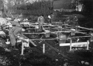1942 lades grundstenarna för kanothuset och efter det… var det bara att börja amortera lånen. Klubben hade fått flera lån, av vilka ett inte togs i anspråk men behölls för att betala ränta och amortering, vilket förvirrade bankdirektören. Kanotklubbens medlemmar var engagerade i många aktiviteter, inklusive orientering, vilket ledde till interna motsättningar. Orienteringsverksamheten avskiljdes från kanotklubben. Frisksportarörelsen nådde också stor popularitet under krigsåren med träningscamp på ”Vredens ö”.